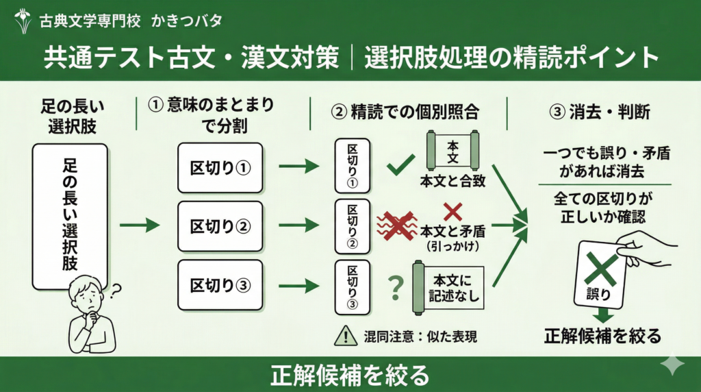 共通テスト古文・漢文の選択肢処理|足の長い選択肢をどう捌くか